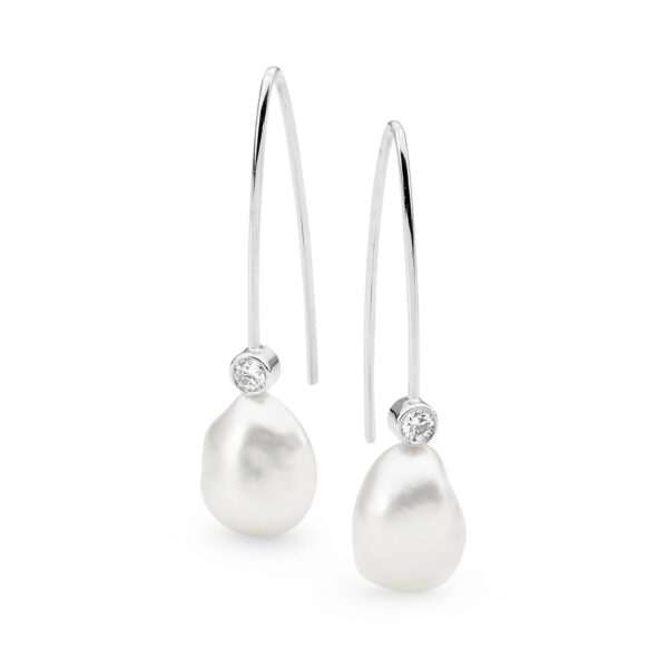 View Product: Offset Square Diamond and Pearl Earrings
