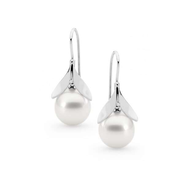 View Product: Trio Diamond Articulated French Hook Pearl Earrings
