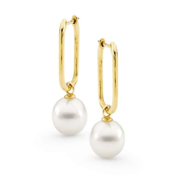 View Product: Yellow Gold Seedless Pearl Hoop Earrings