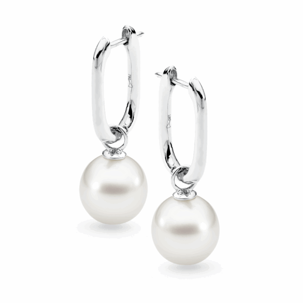 View Product: Short Elongated Huggie & Detachable Pearl Earrings