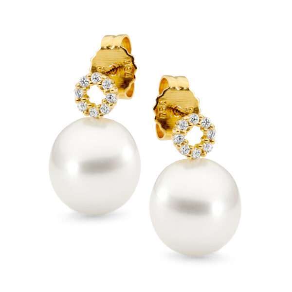 View Product: Short Elongated Diamond Huggie & Detachable Pearl Earrings