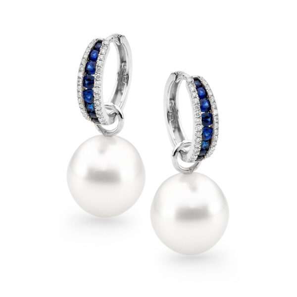 View Product: Blue Sapphire & Diamond Detachable Pearl Earrings