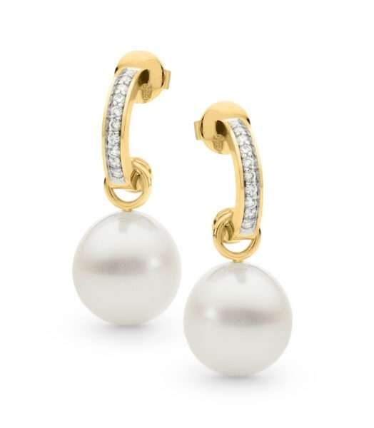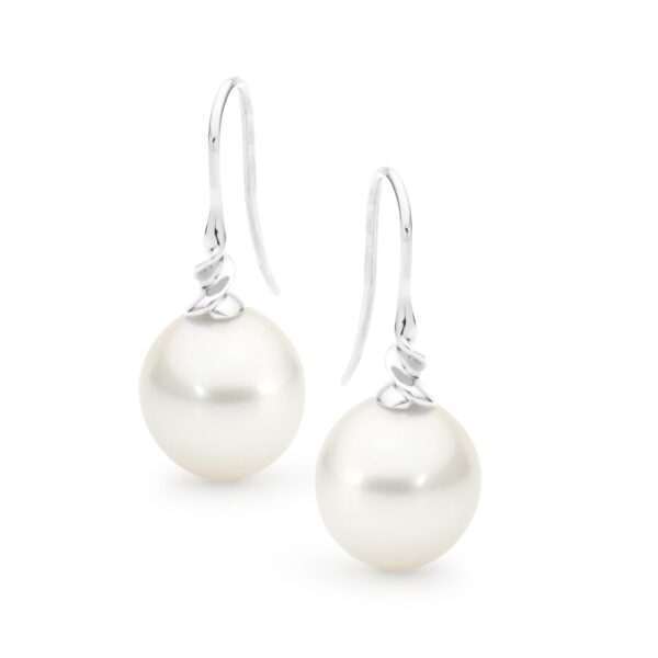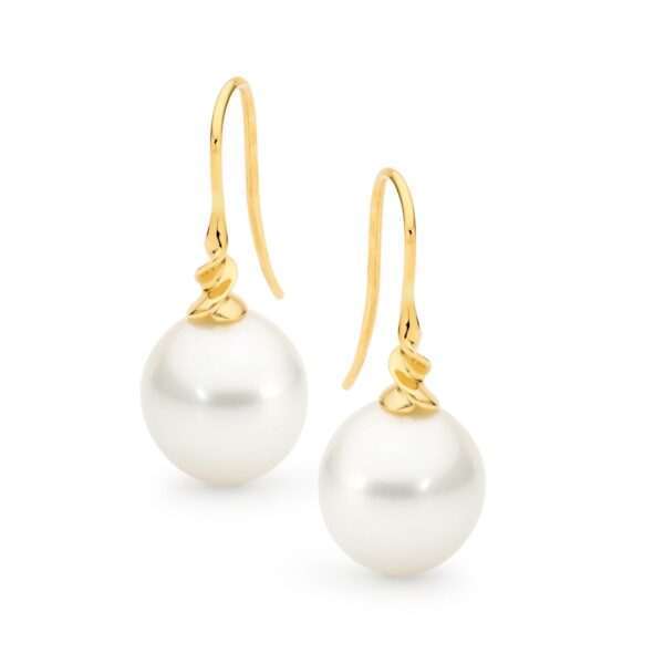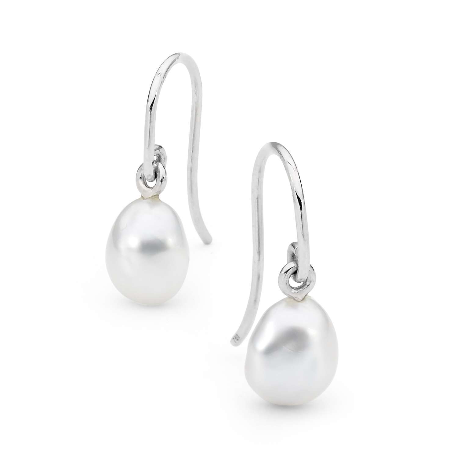 In a fine articulated French hook style, these earrings are set in 18ct yellow or white gold and feature a pair of lustrous 6-7mm Australian South Sea keshi pearls.