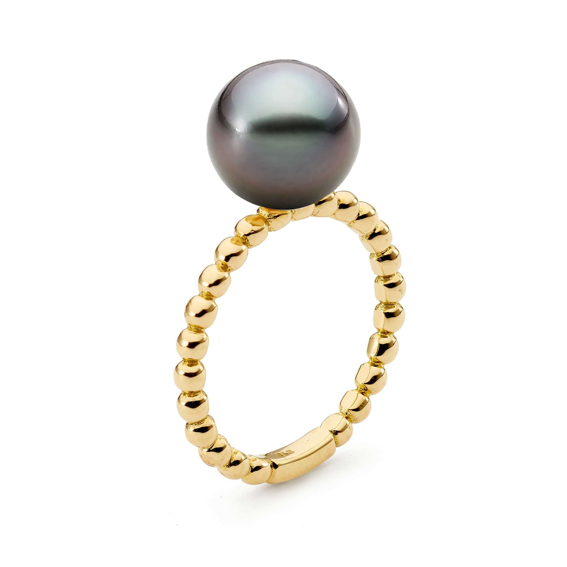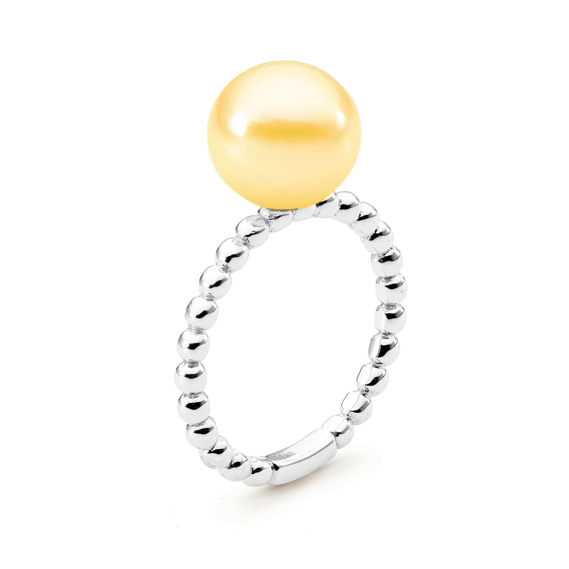 This lovely Beaded Pearl Ring is set in 18ct gold and features a lustrous 9-10mm button South Sea cultured pearl. Available in 18ct yellow or white gold, with three pearl colour variations. Please select your