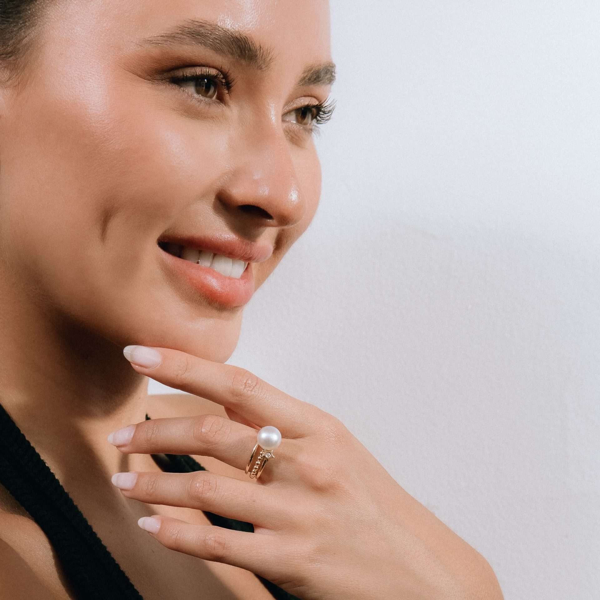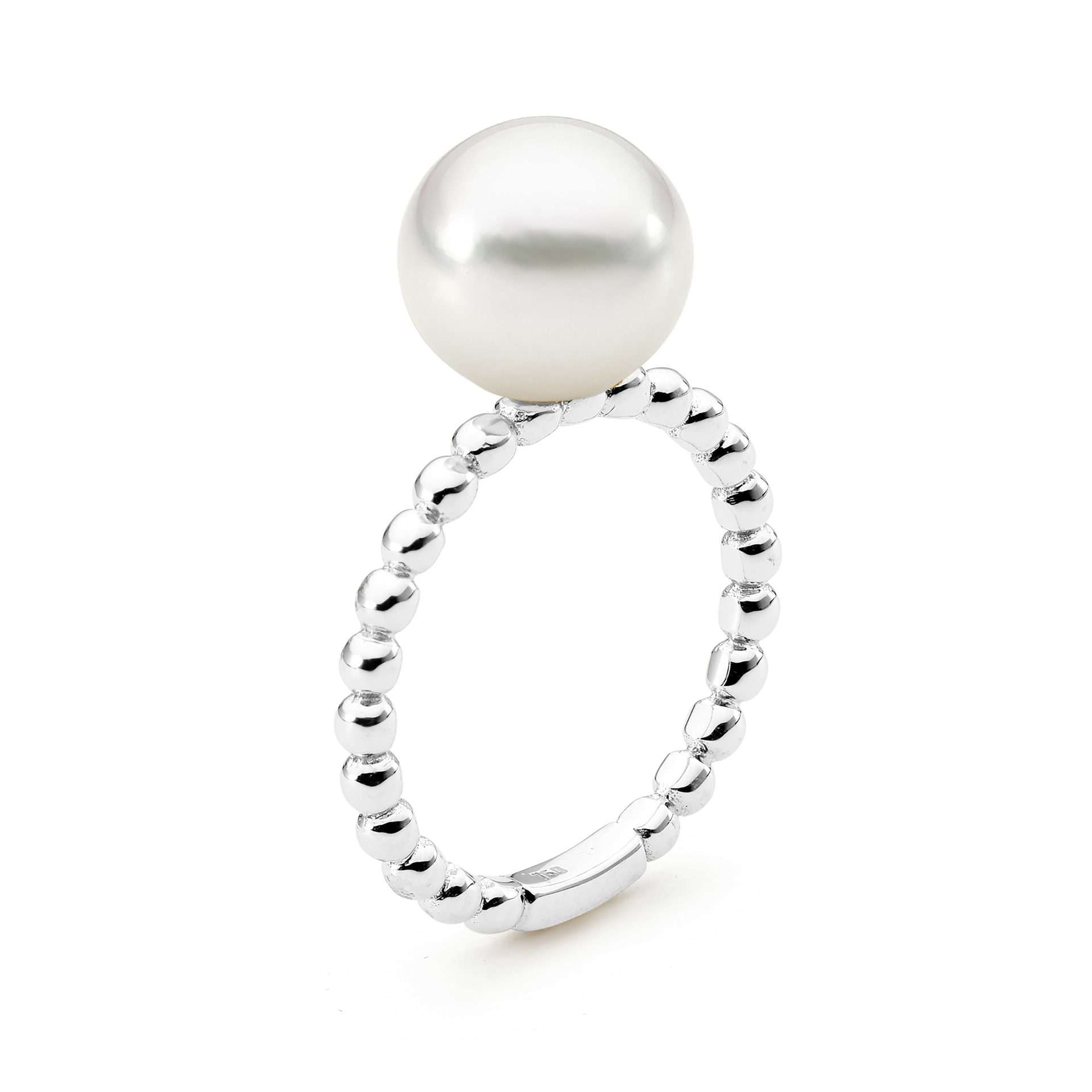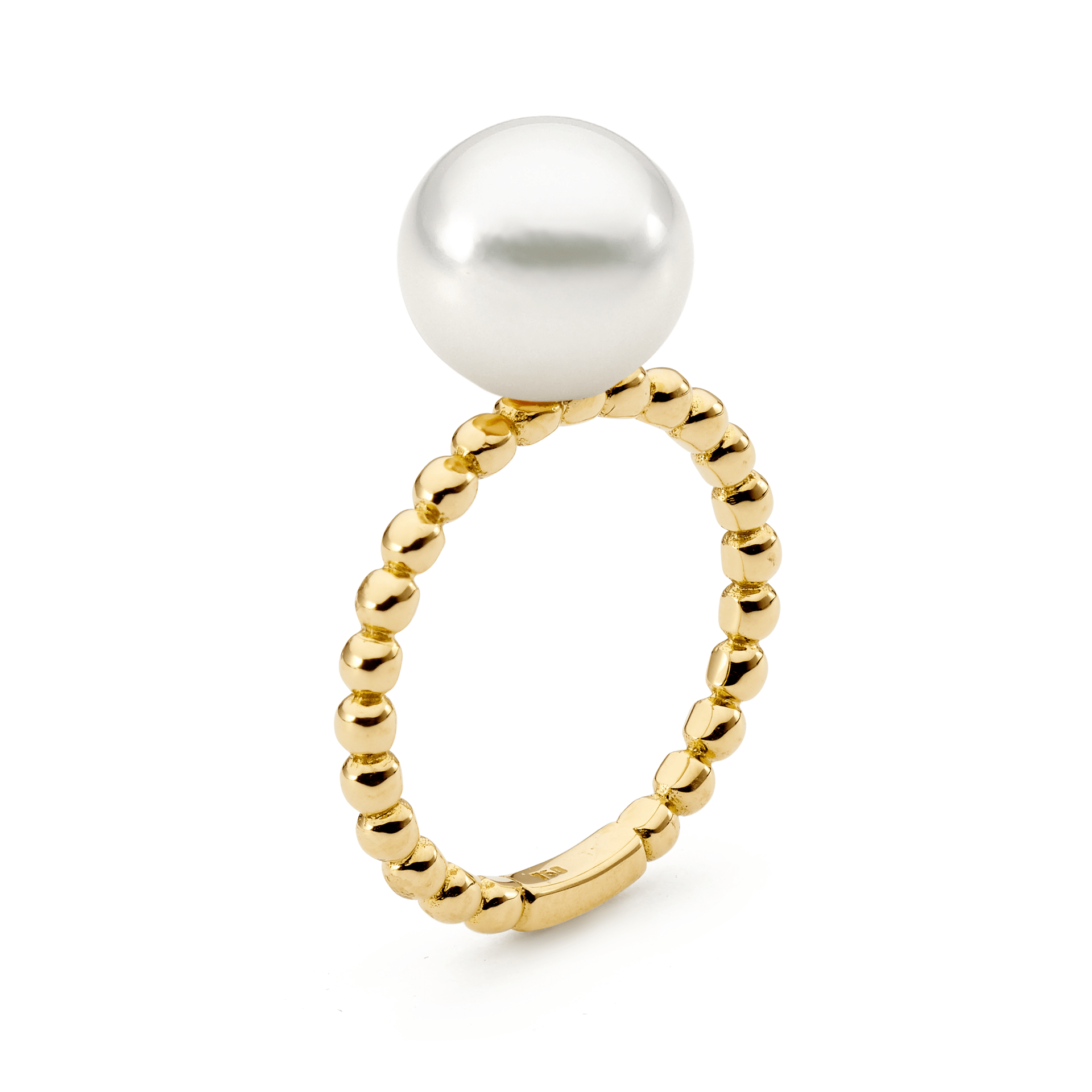 This lovely Beaded Pearl Ring is set in 18ct gold and features a lustrous 9-10mm button South Sea cultured pearl.