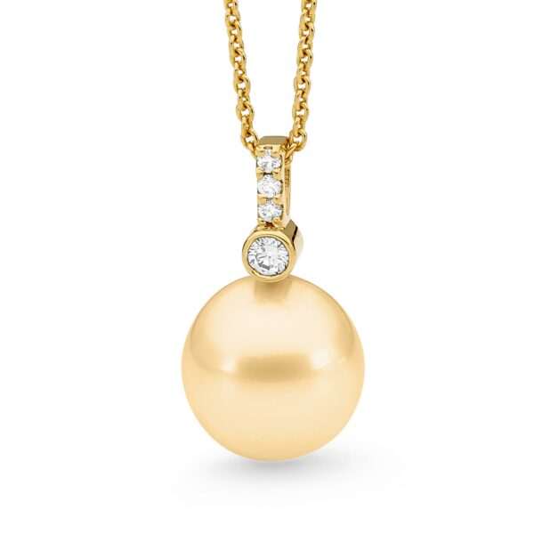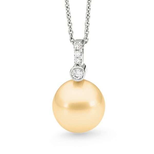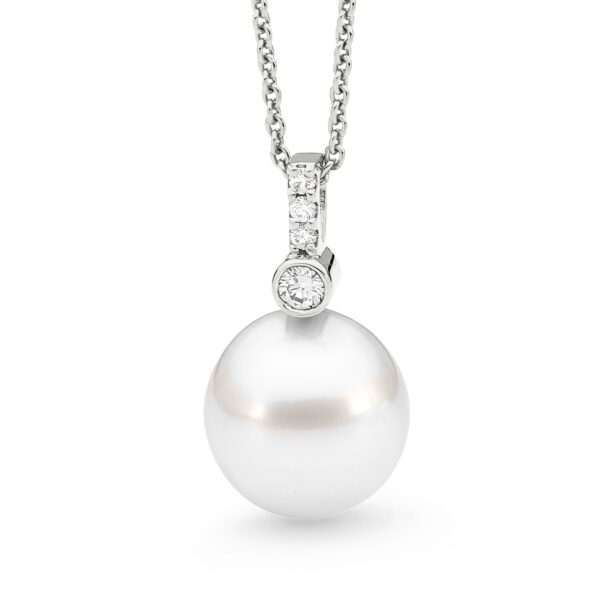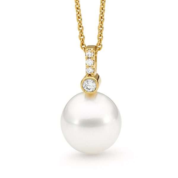 Set in 18ct yellow or white gold, this pendant features a lustrous oval/drop South Sea pearl on a classic single looped bale.