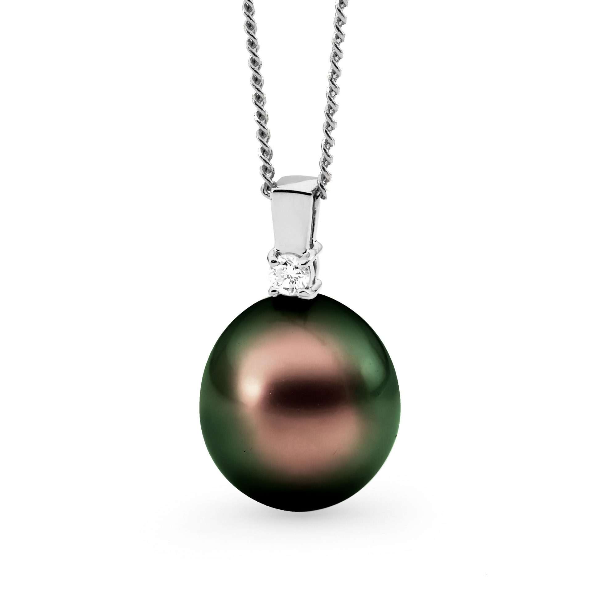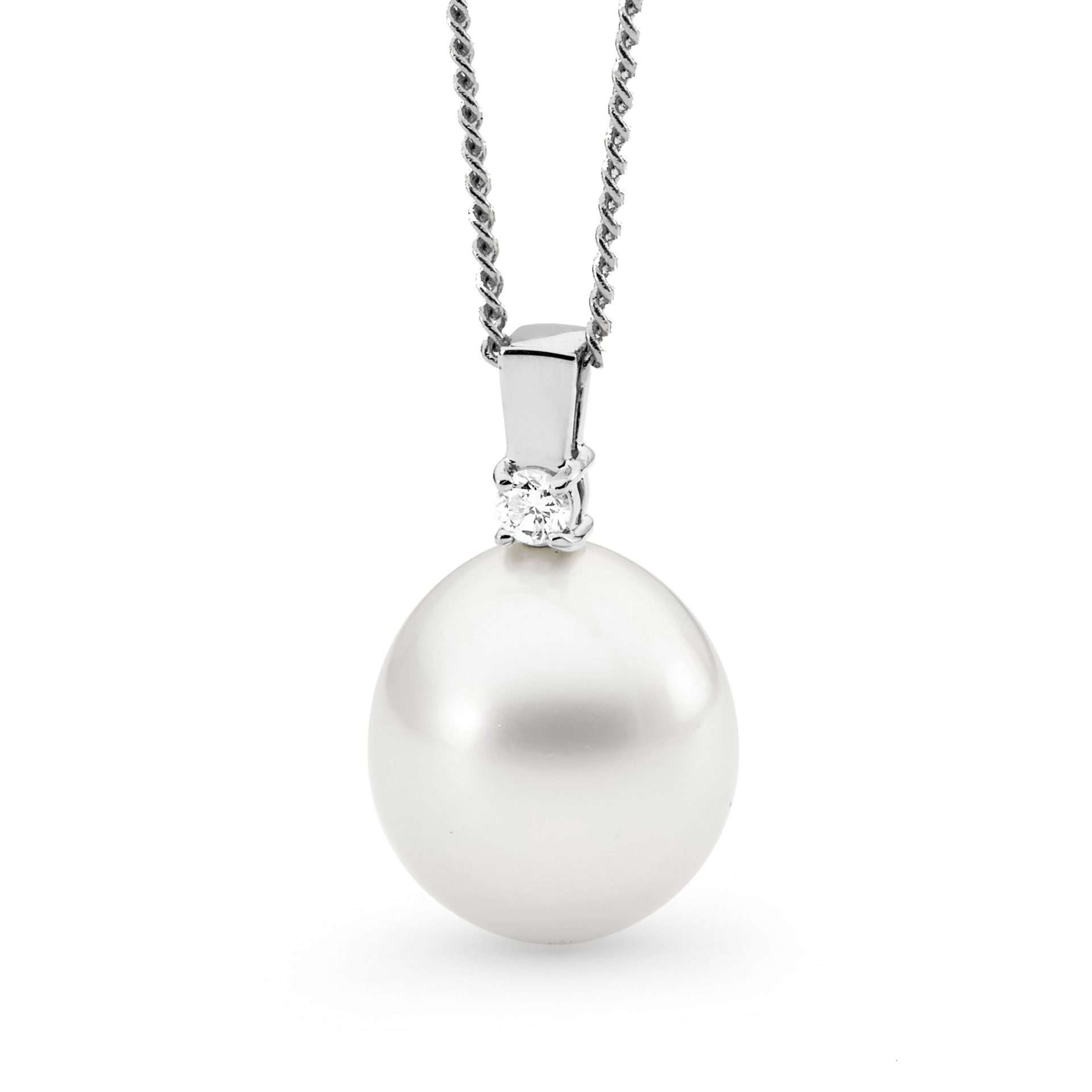 This classic pendant is crafted in 18ct gold and features a 12-13mm South Sea cultured pearl and is accentuated with 1= 0.07ct G/SI diamond. Available in 18ct white or yellow gold, with three pearl colour