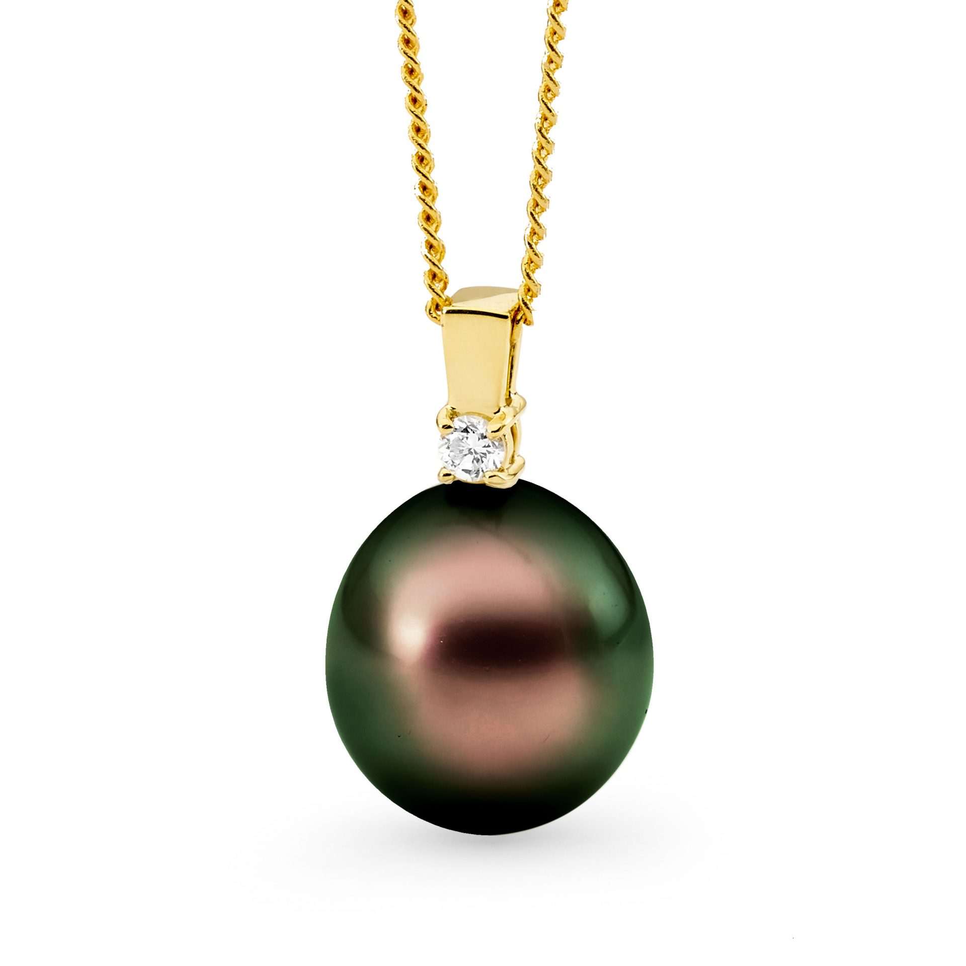 This classic pendant is crafted in 18ct gold and features a 12-13mm South Sea cultured pearl and is accentuated with 1= 0.07ct G/SI diamond.