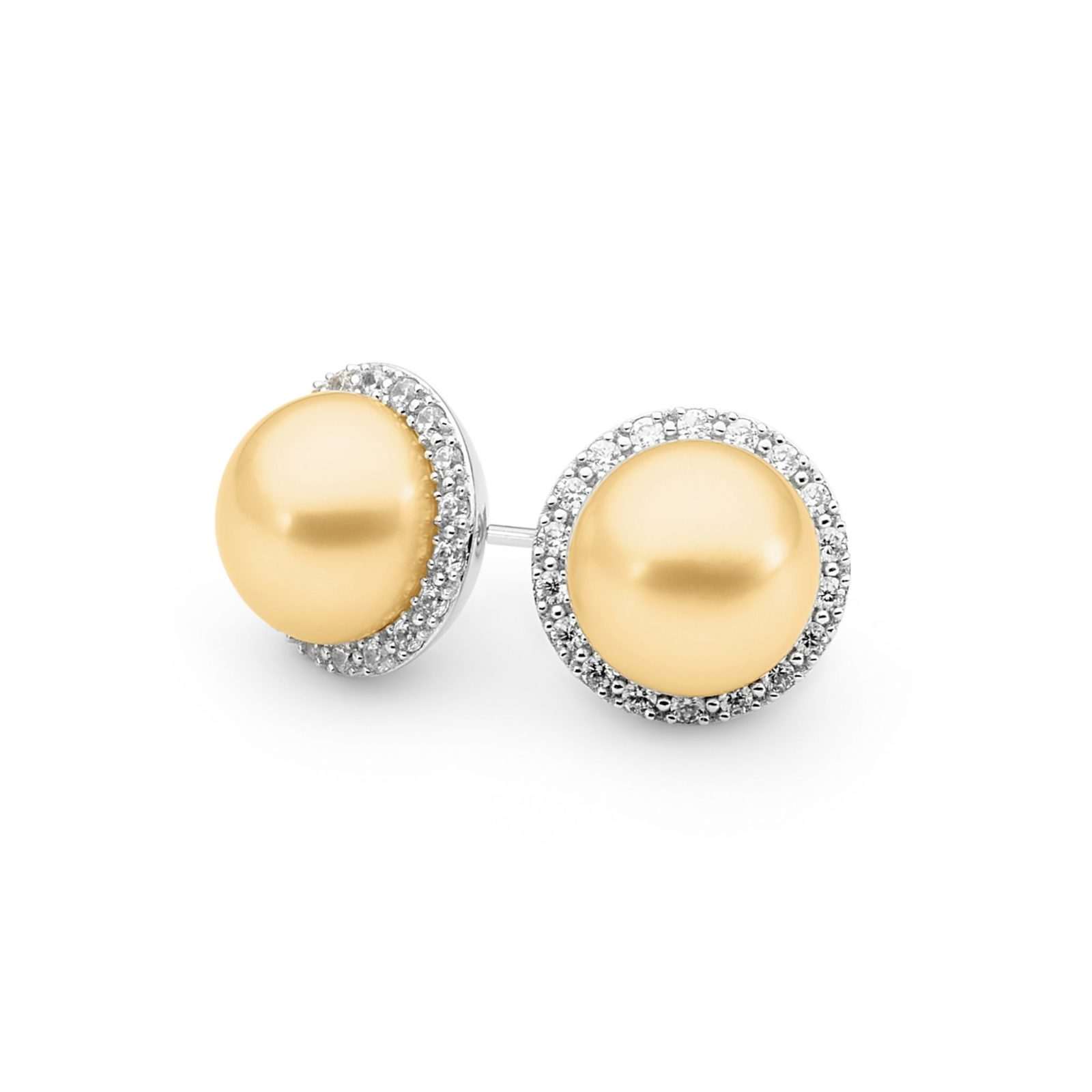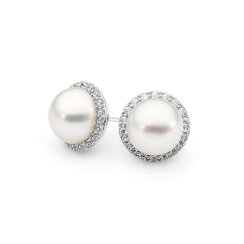 Diamond Halo Button Pearl Earrings