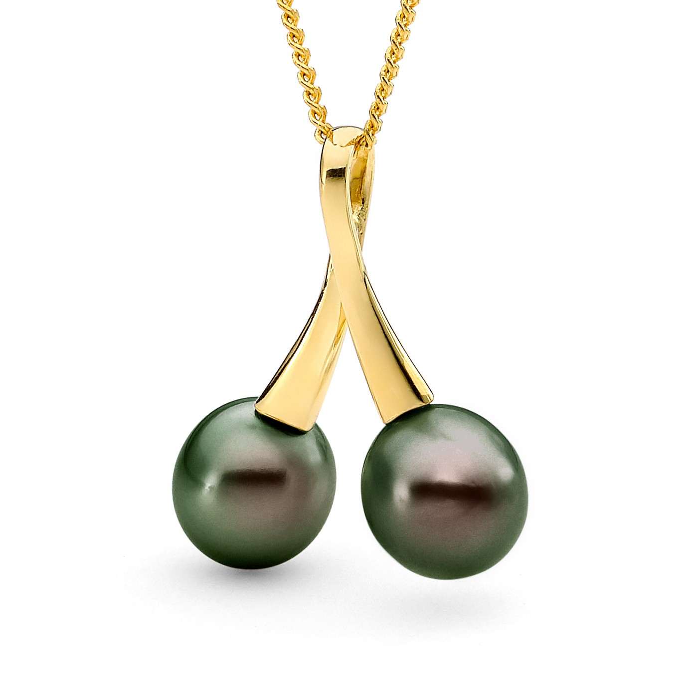 Set in 18ct gold, this double pearl pendant features two 9-10mm oval/drop South Sea pearls. Available in 18ct yellow or white gold, with three pearl colour variations. (Chain is for display purposes only). Please select