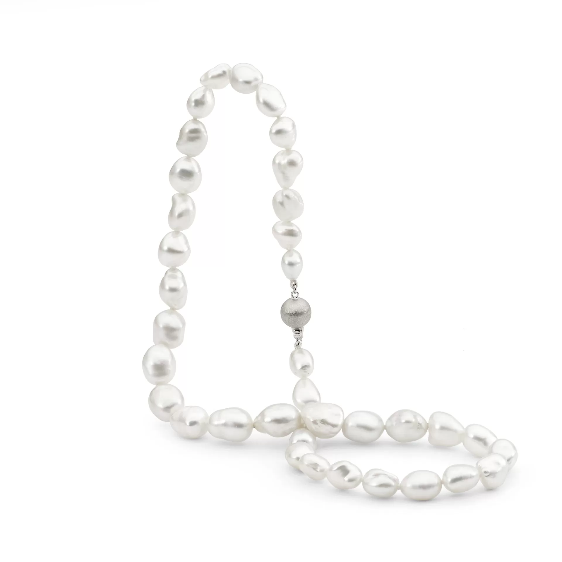 This stunning strand features 37x 6.36mm-10.52mm Australian South Sea keshi pearls and includes a 9mm 18ct white gold brushed ball clasp.