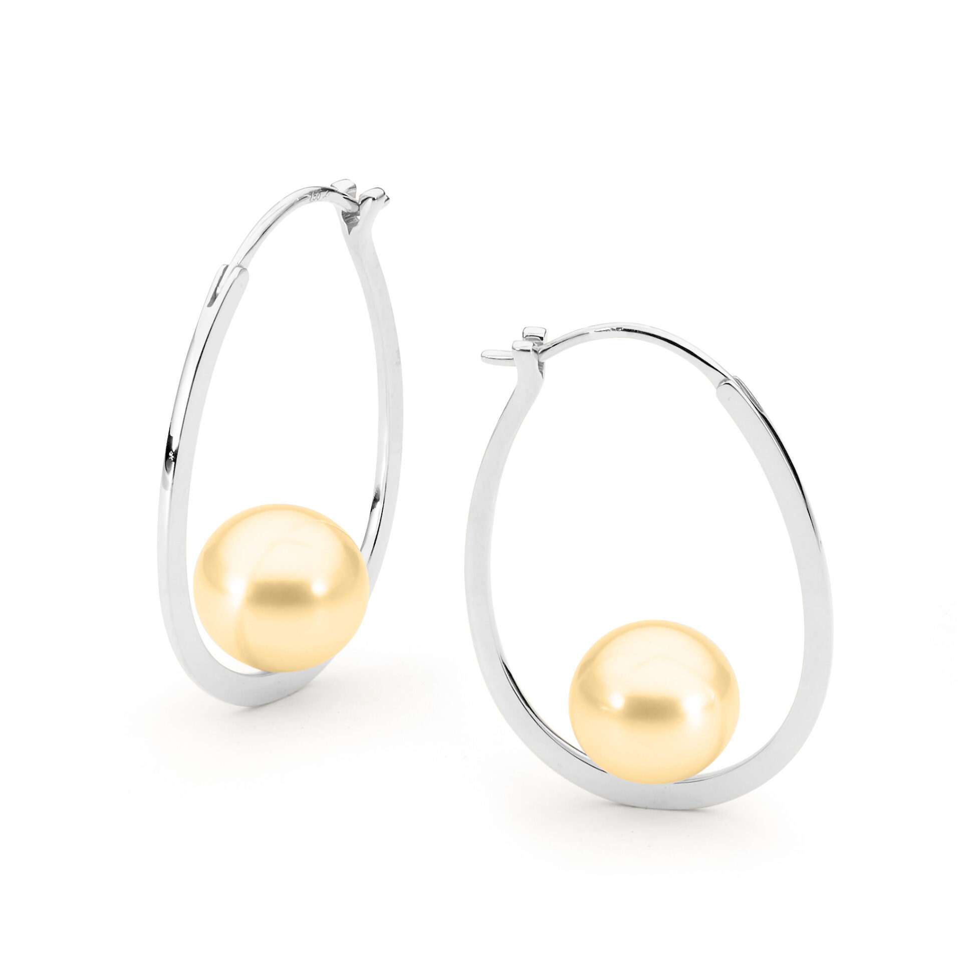 Set in 18ct gold, these delicate looped oval pearl earrings are centred by a pair of stunning 10-11mm South Sea cultured button pearls.