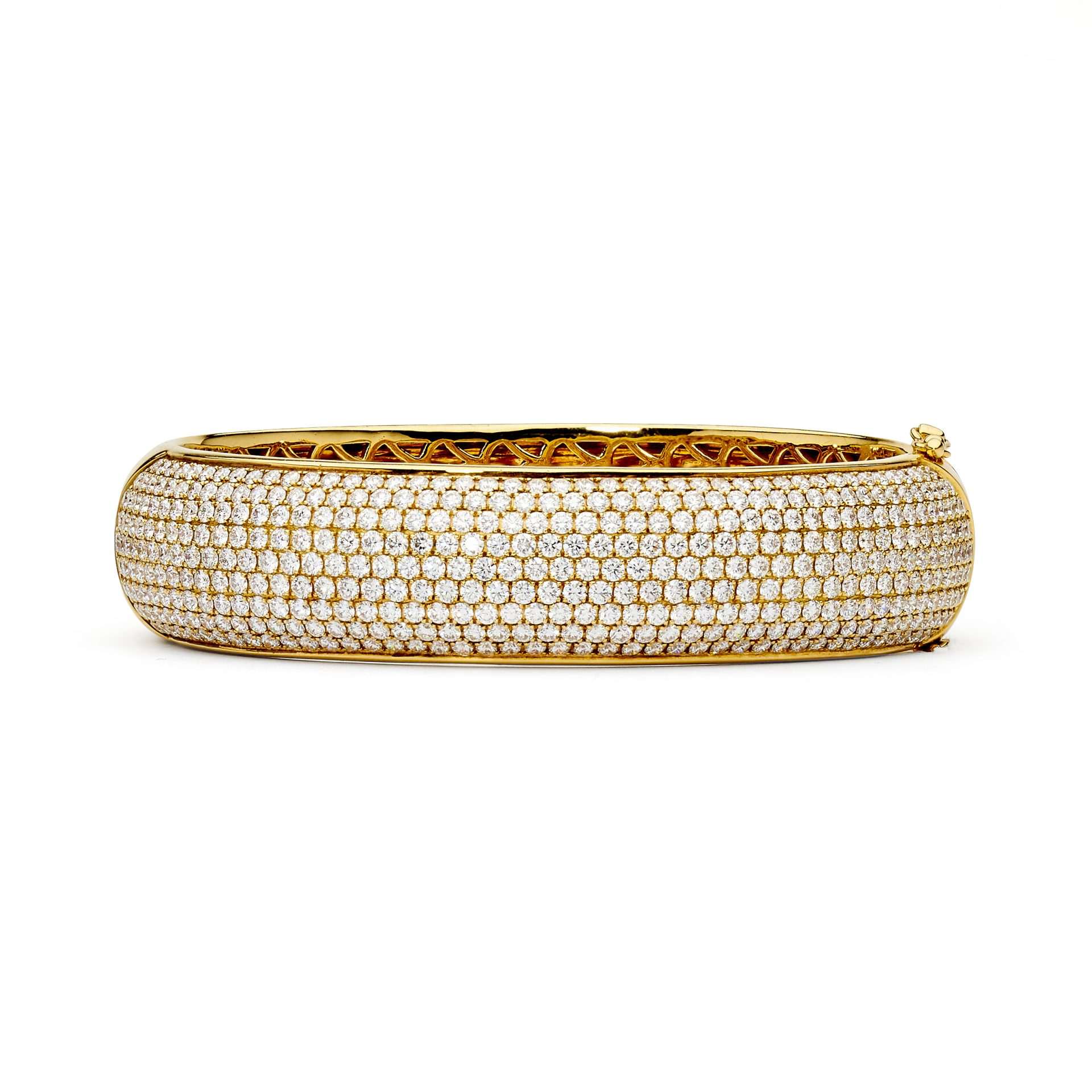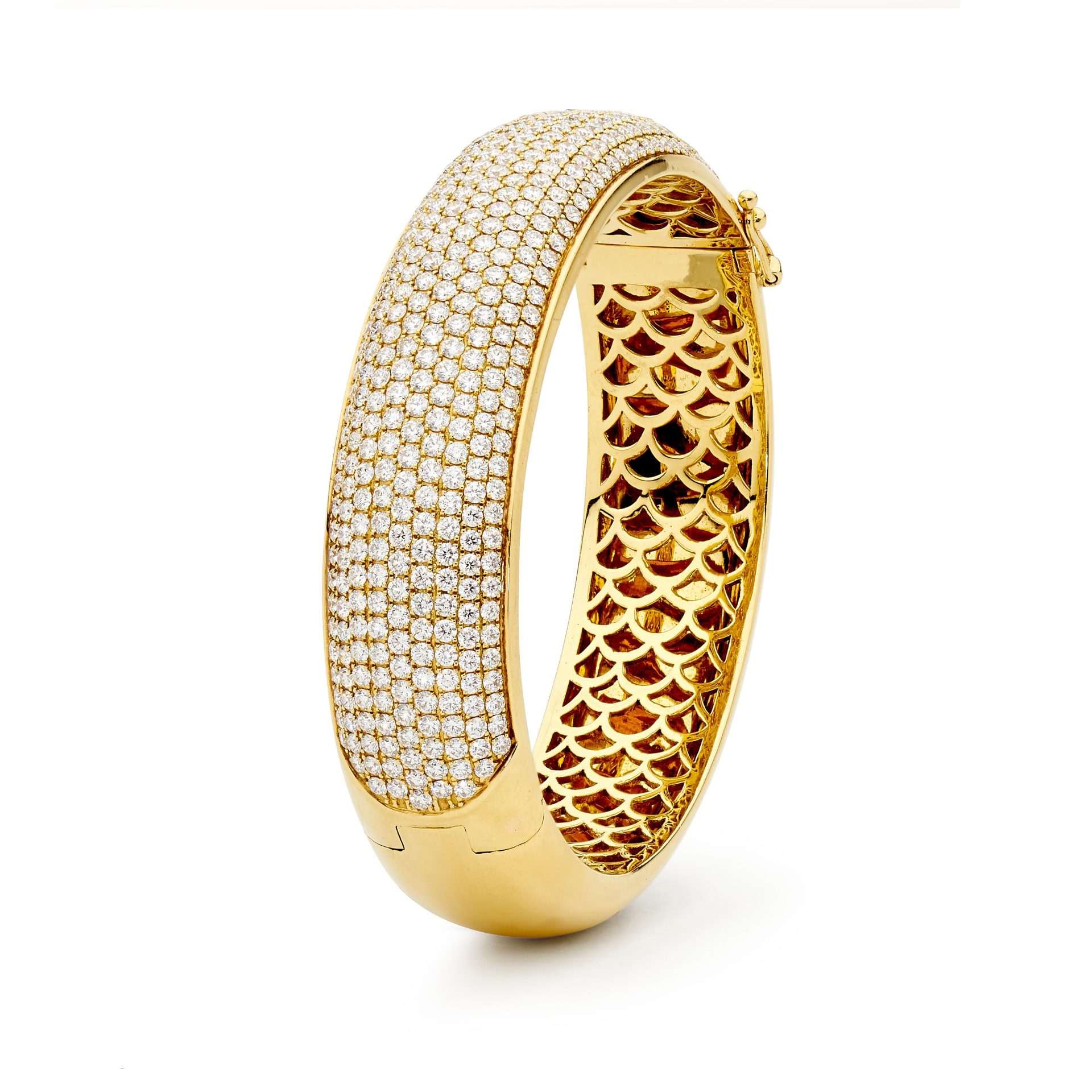 This exceptional Pavé Set Diamond Bangle is set in 18ct yellow gold and features 420=8.80ct round brilliant cut G/SI1 diamonds.