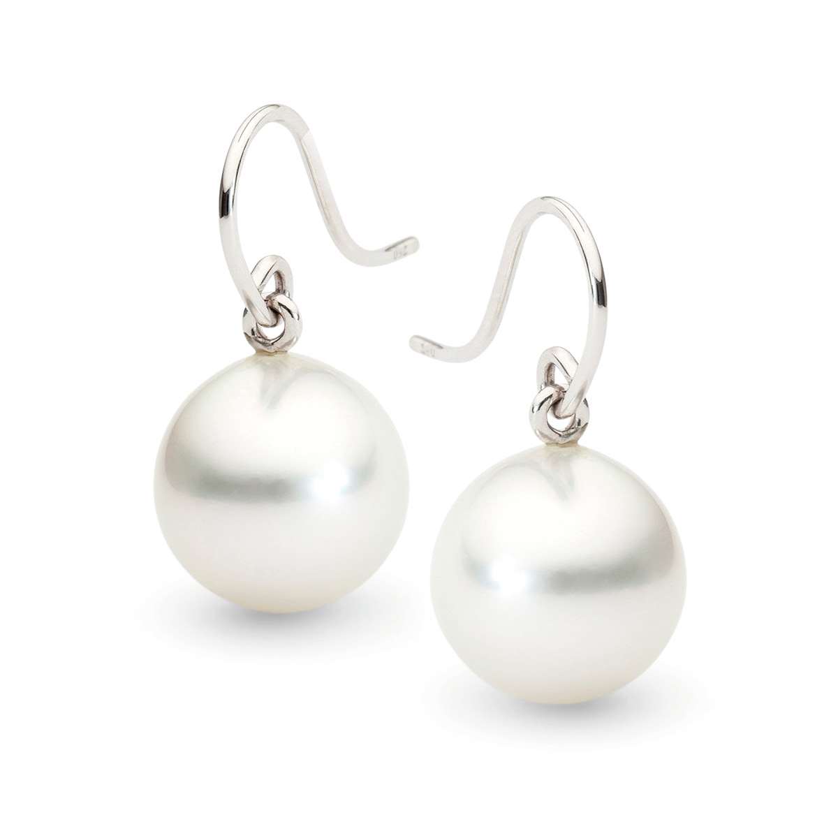 A lustrous pair of oval/drop South Sea pearl earrings in an articulated fine French hook setting. Available in 18ct yellow or white gold, with three pearl colour variations. Please select your desired pearl colour and
