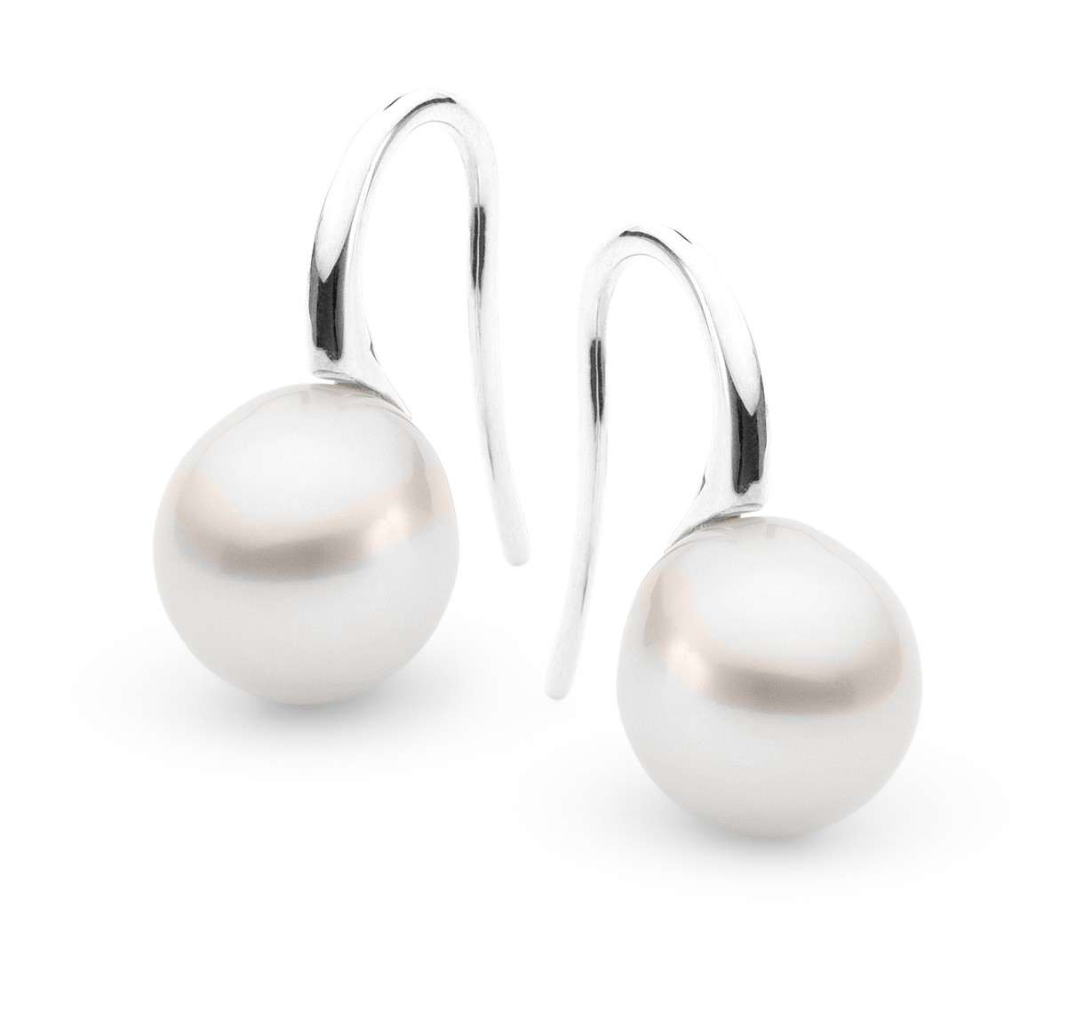 These stunning fixed French hook earrings are set in 18ct yellow or white gold and feature a pair of glowing oval/drop South Sea pearls.