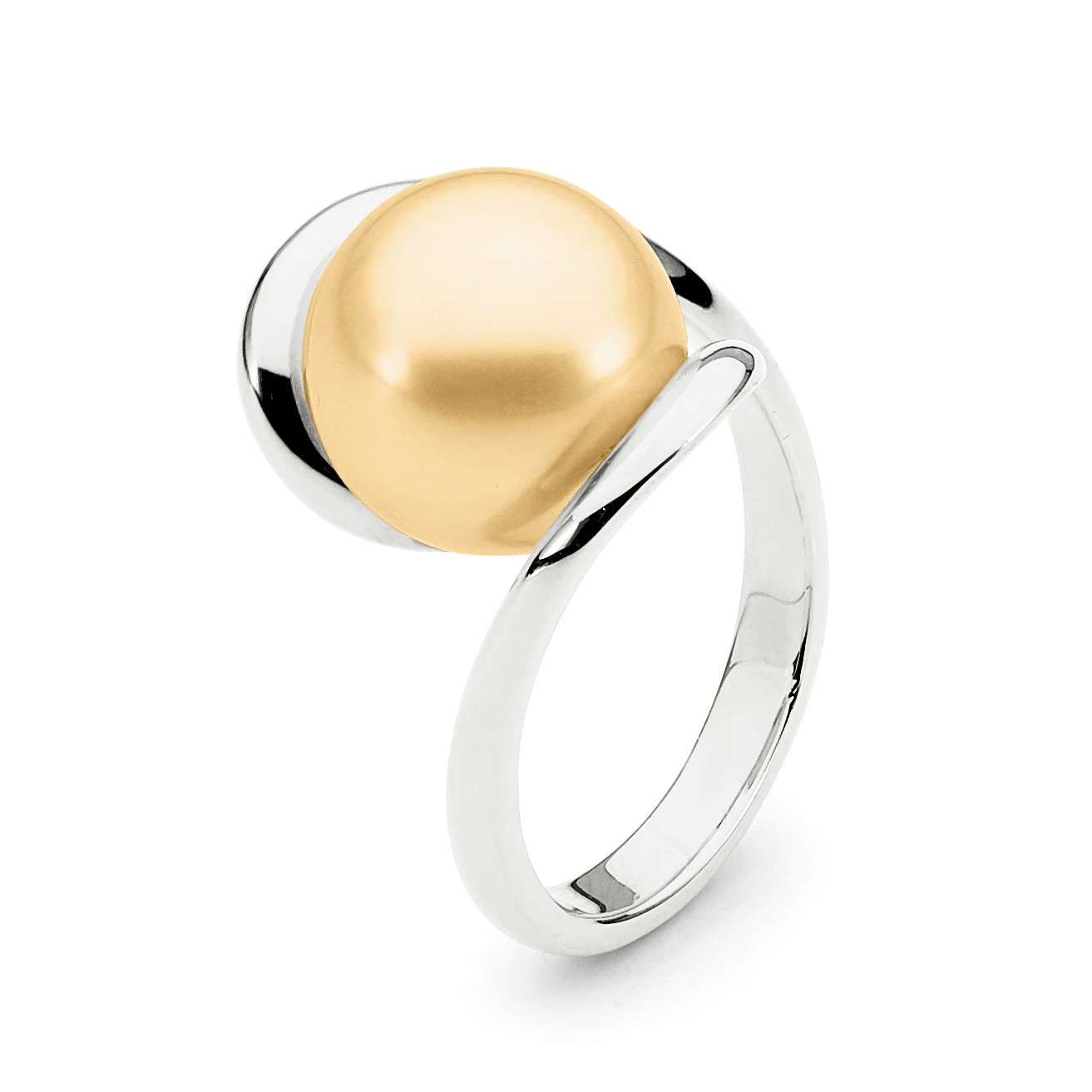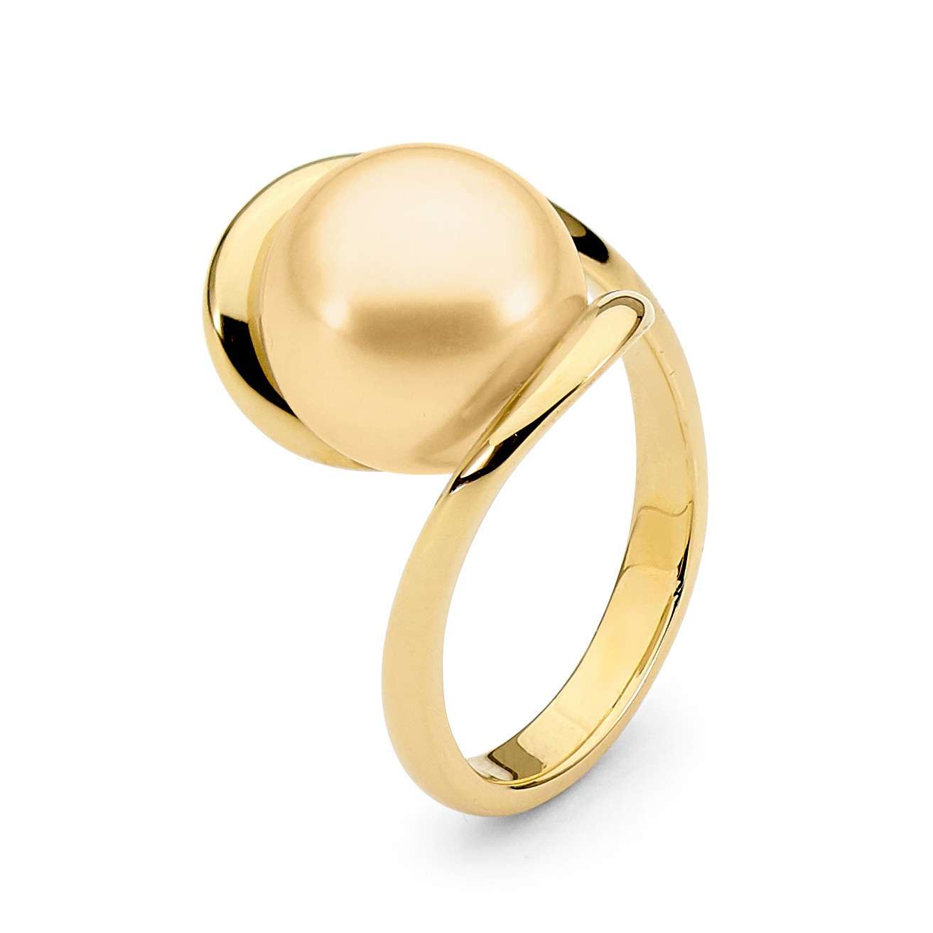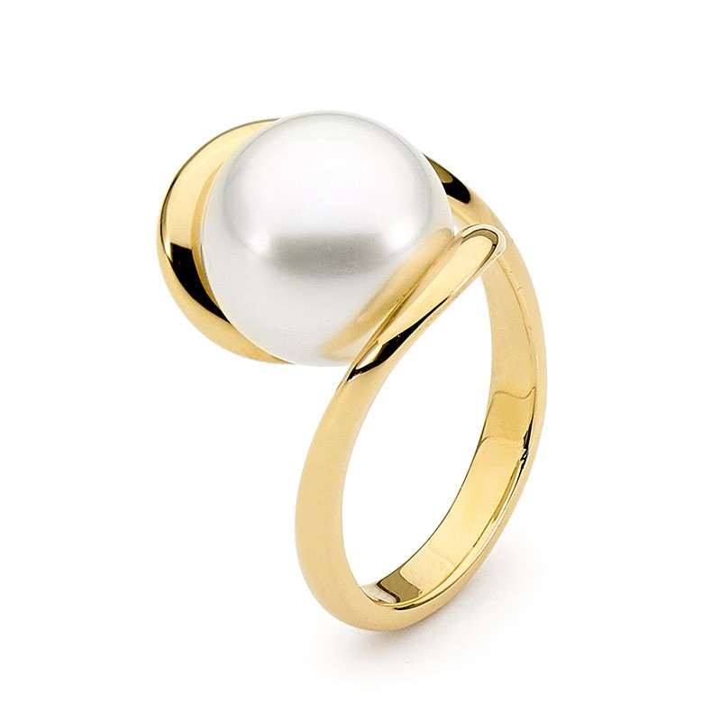 Available in your choice of 18ct yellow or white gold, this nested pearl ring features a lustrous 12-13mm oval/drop South Sea pearl.
