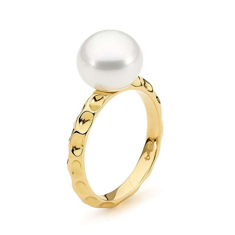 This stylish ring set in 18ct yellow or white gold and features a beautiful 10-11mm button white South Sea pearl.