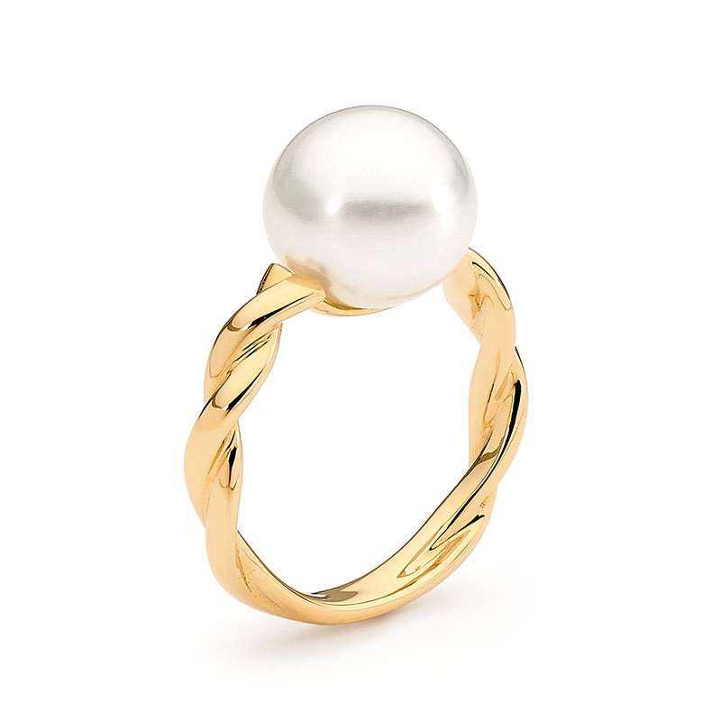 This stunning ring is set in 18ct yellow or white gold and features a beautiful 10-11mm button white South Sea pearl. Price displayed applies to ring size M. If the design allows, we offer complimentary