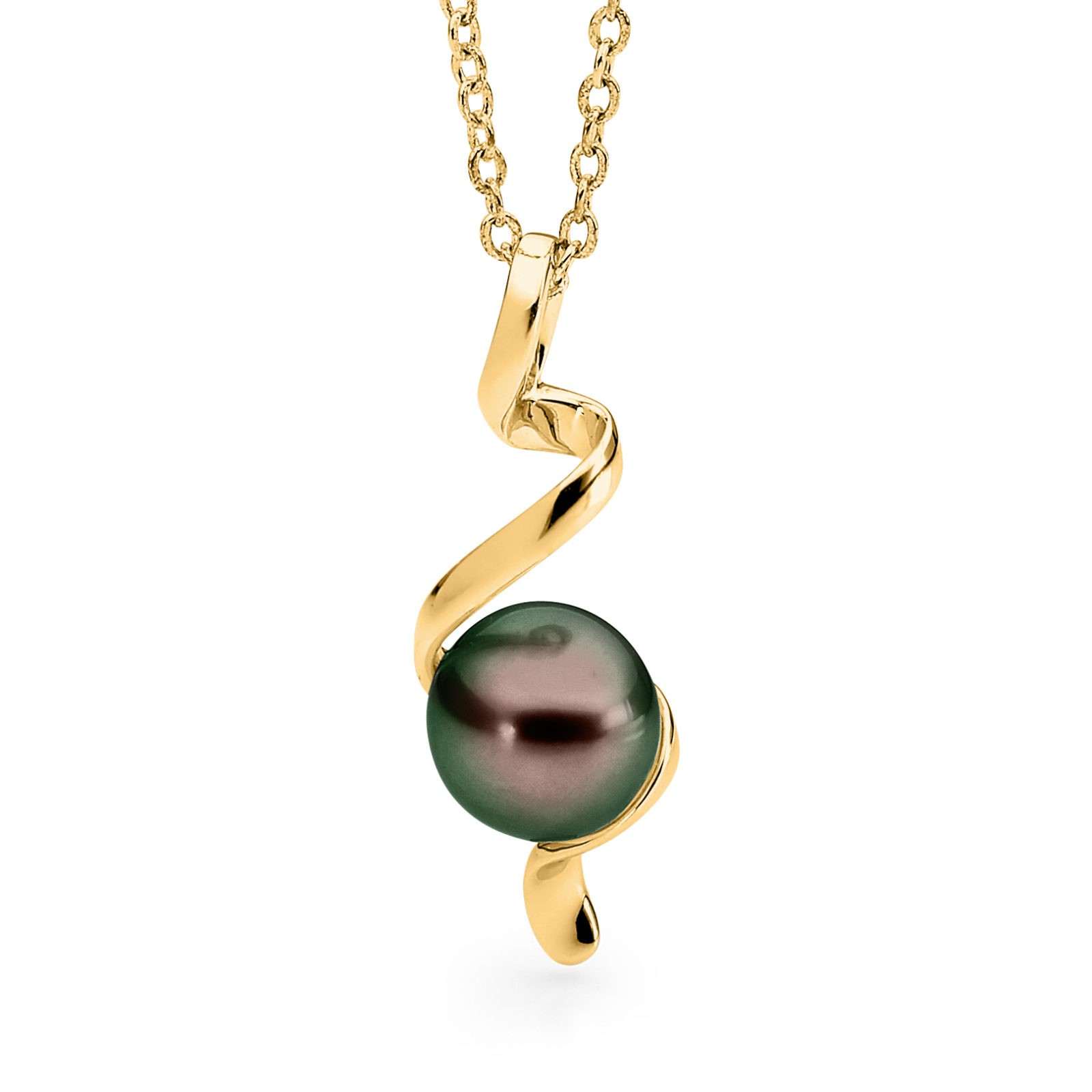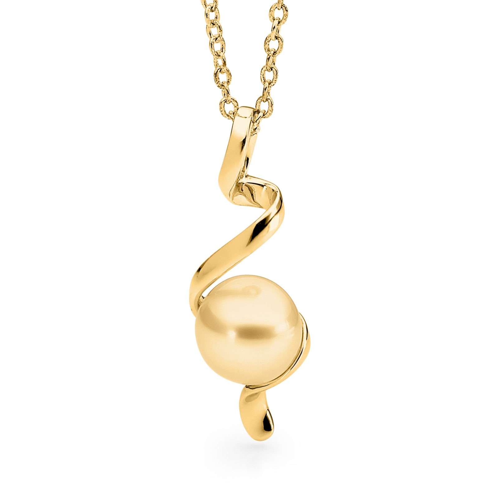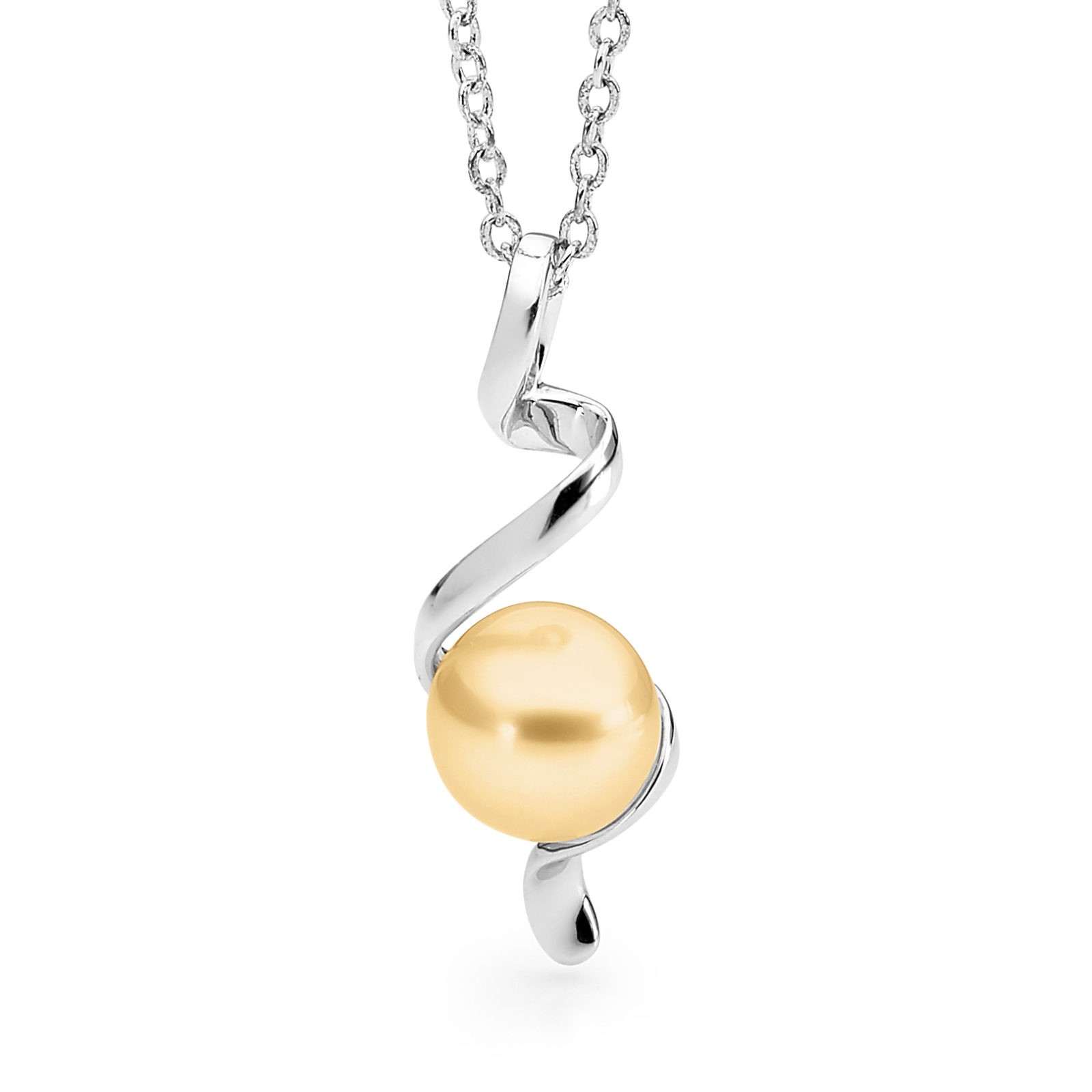 Set in 18ct yellow or white gold, this beautiful Spiral Pearl Pendant features a lustrous 9-10mm button shaped South Sea pearl.