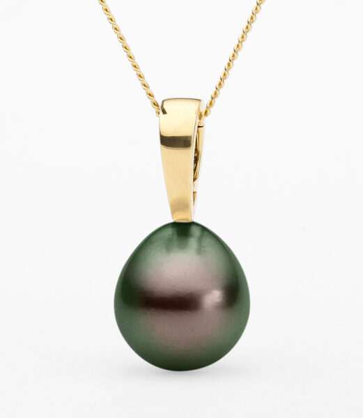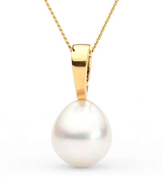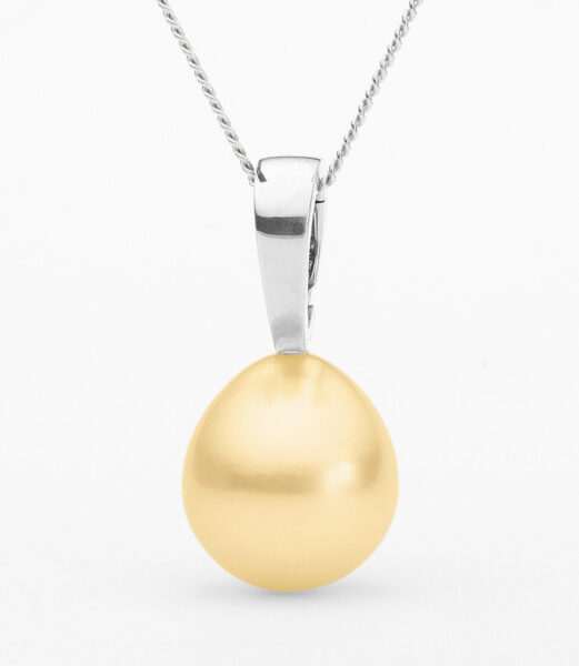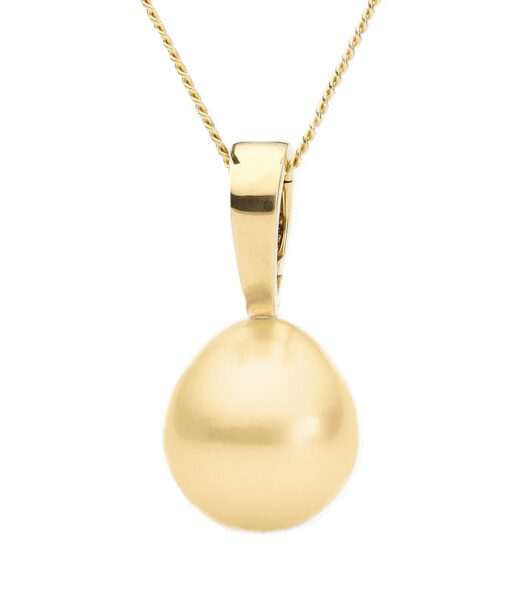 Handcrafted in 18ct yellow gold, this pendant features a rich, textured finish that enhances it’s organic beauty, and features a lustrous 17.7x19mm Australian South Sea cultured semi-baroque pearl and 6=0.04ct G/SI round brilliant cut diamonds.