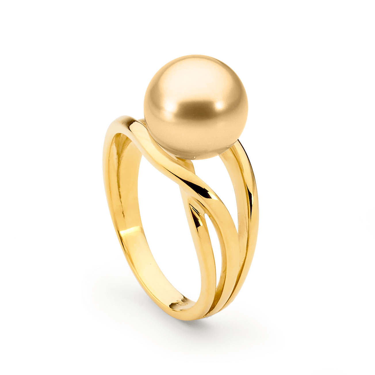 This luminous pearl ring captures the essence of modern design with timeless appeal. Crafted in 18ct gold, this pearl ring features one white button (9-10mm) cultured pearl set in a polished, split shank band. Available