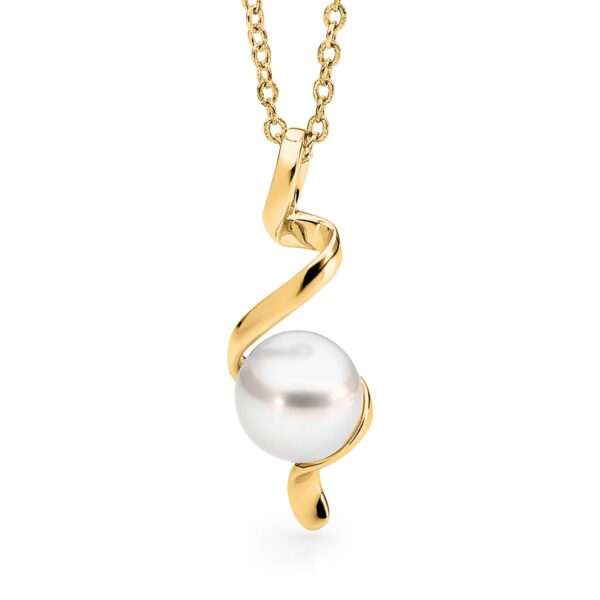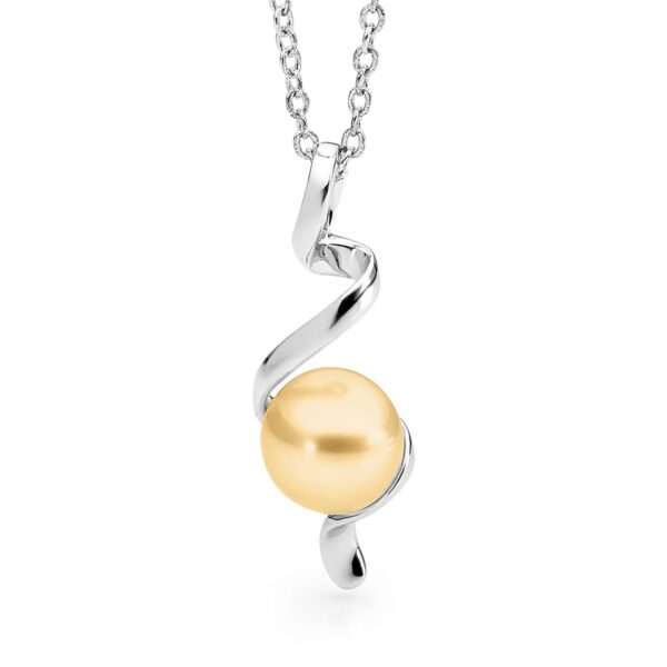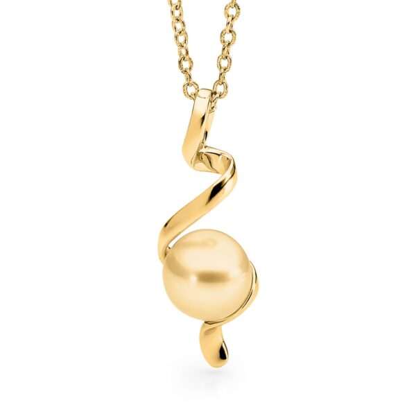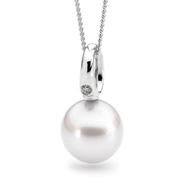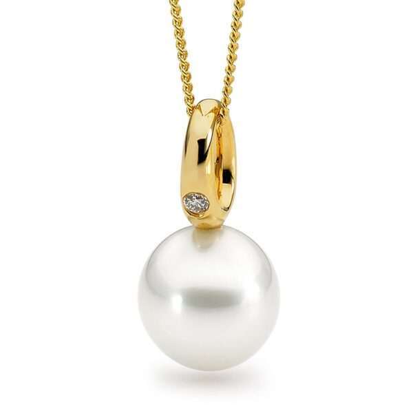 Handcrafted in 18ct yellow gold, this beautiful pendant features a lustrous 14-15mm oval/drop Australian South Sea cultured pearl and includes 1=0.035ct G/SI round brilliant cut diamond.