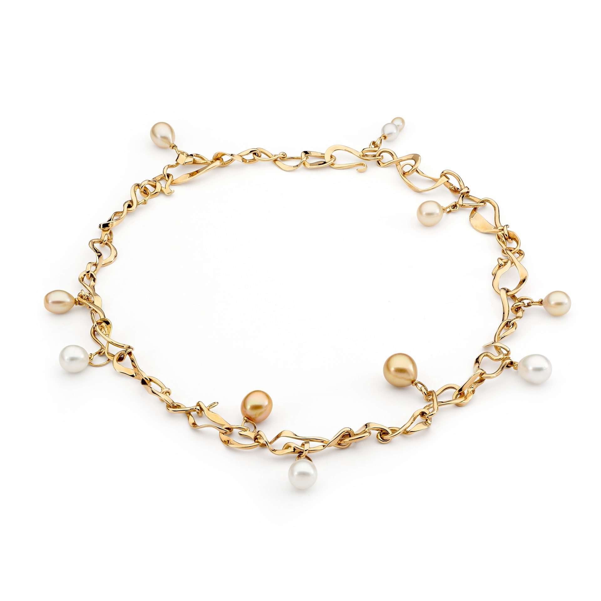 This astonishing necklace has been handcrafted in 18ct yellow gold and features 4x white South Sea cultured pearls and 7x Gold South Sea cultured pearls from 7mm through 14.7mm.