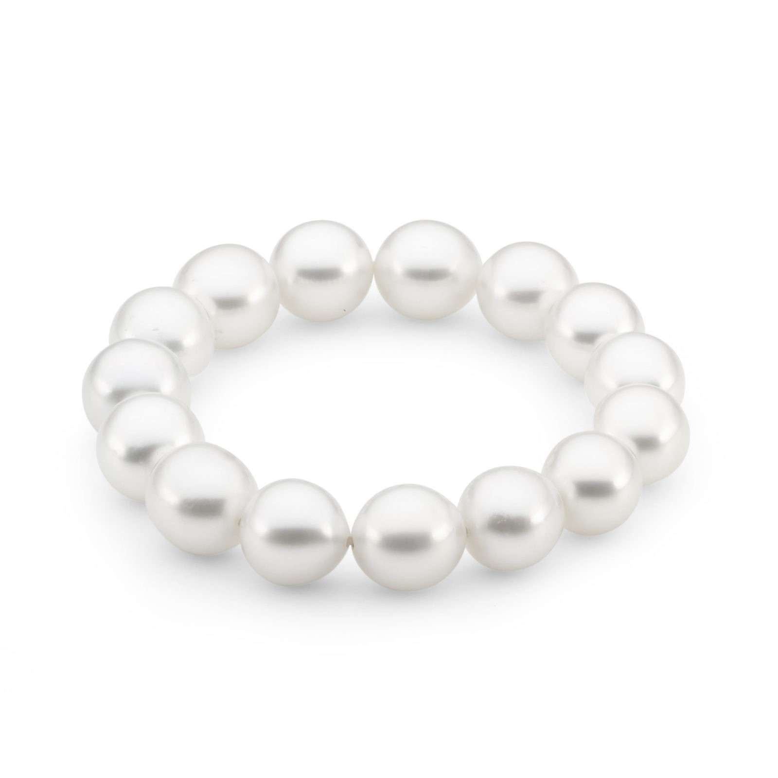 A 16-piece Australian South Sea pearl strand bracelet, featuring 11mm-12mm white drop culturedย pearls with excellent lustre. This bracelet has been carefully threaded with elasticised nylon. MADE TO ORDER Our jewellery pieces are made from