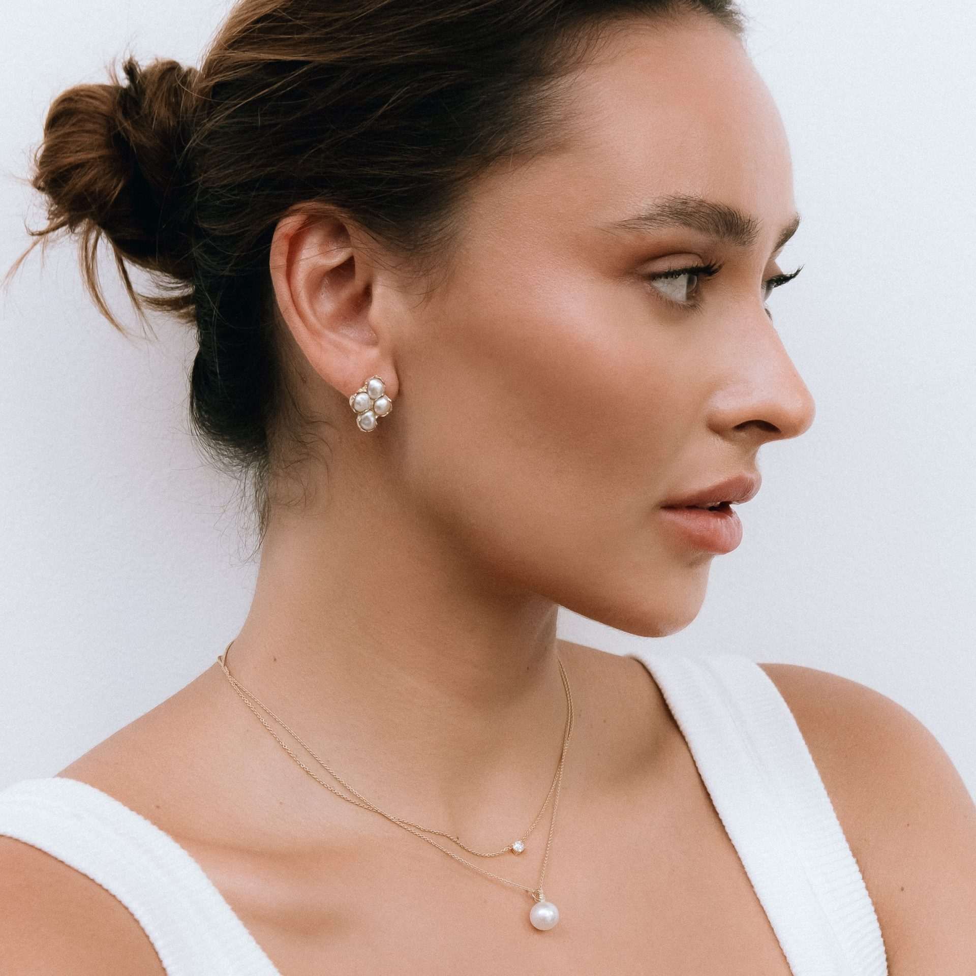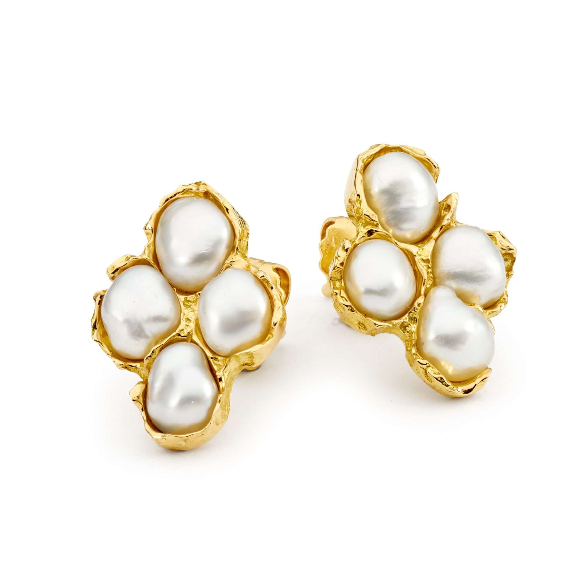 These beautiful stud earrings have been handcrafted in 18ct yellow gold and feature eight Australian South Sea keshi pearls (4-5mm).